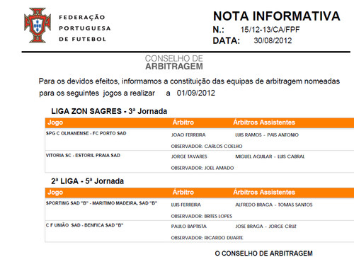 Há quatro textos atrás escrevi, a propósito das nomeações de árbitros do Vítor Pereira, o seguinte: